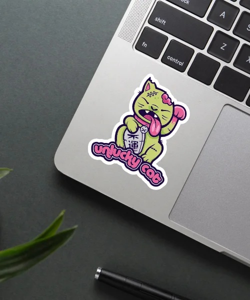 Unlucky Cat Sticker vinyl sticker, waterproof durable collectible sticker for laptop, phone, bottle, bike, notebook, helmet, and accessories.