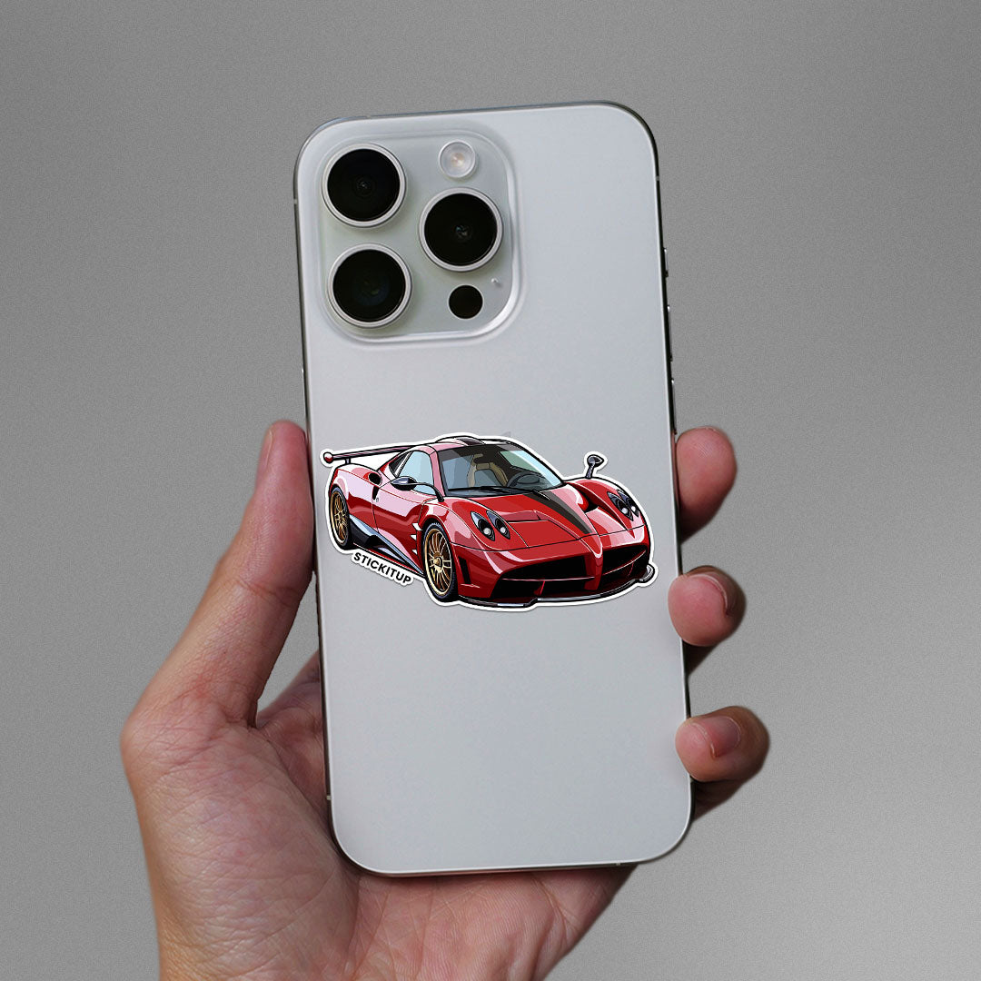 Red Huayra Sticker vinyl sticker, waterproof durable collectible sticker for laptop, phone, bottle, bike, notebook, helmet, and accessories.