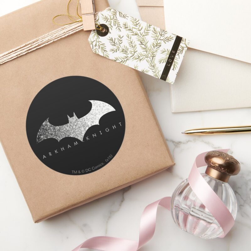 Batman Arkham Knight Pixel Logo Classic Round Sticker vinyl sticker, waterproof durable collectible sticker for laptop, phone, bottle, bike, notebook, helmet, and accessories.