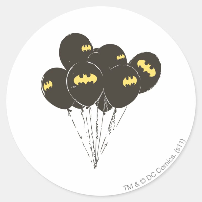 Batman Balloons Classic Round Sticker vinyl sticker, waterproof durable collectible sticker for laptop, phone, bottle, bike, notebook, helmet, and accessories.