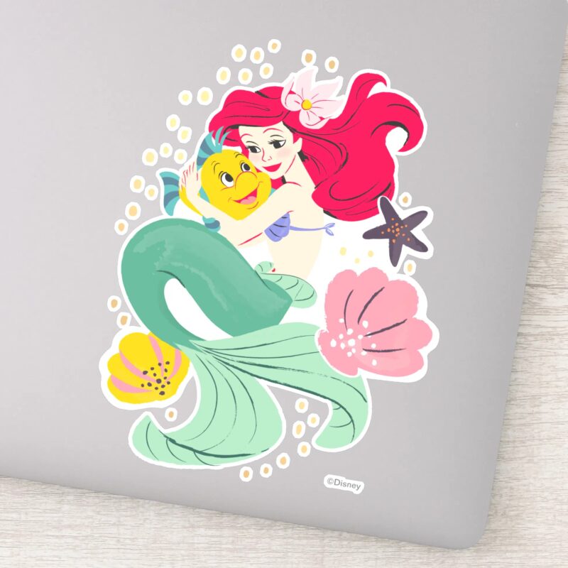Princess Ariel Holding Flounder Illustration Sticker vinyl sticker, waterproof durable collectible sticker for laptop, phone, bottle, bike, notebook, helmet, and accessories.