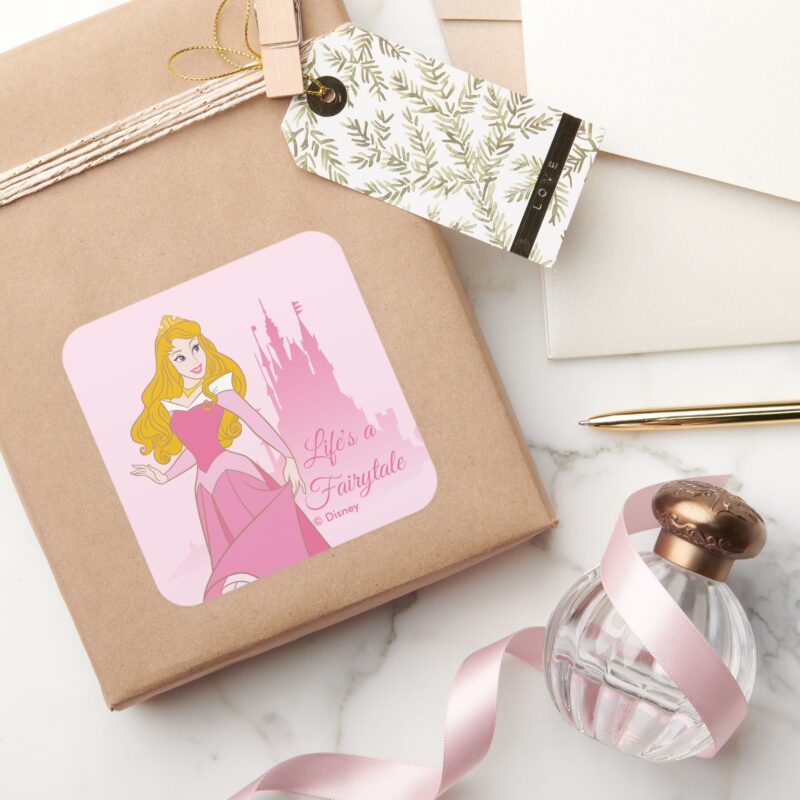 Princess Aurora Castle Graphic Square Sticker vinyl sticker, waterproof durable collectible sticker for laptop, phone, bottle, bike, notebook, helmet, and accessories.
