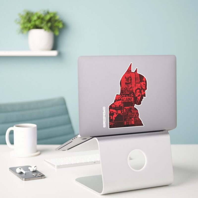 The Batman Newspaper Silhouette Sticker vinyl sticker, waterproof durable collectible sticker for laptop, phone, bottle, bike, notebook, helmet, and accessories.