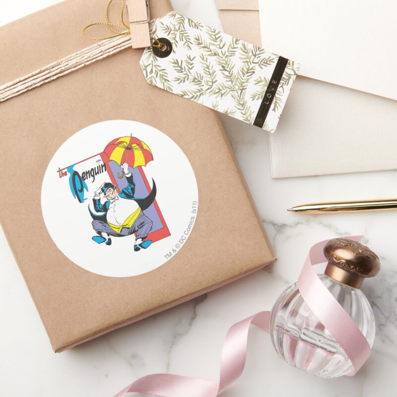 The Penguin 2 Classic Round Sticker vinyl sticker, waterproof durable collectible sticker for laptop, phone, bottle, bike, notebook, helmet, and accessories.