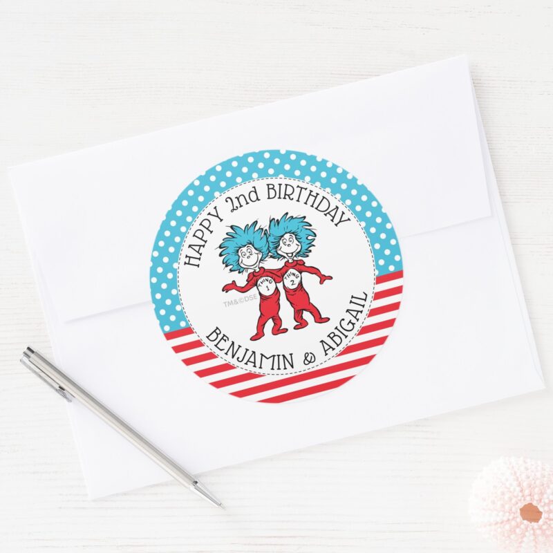 Thing One Thing Two Twins Birthday Classic Round Sticker