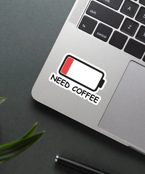Need Coffee Sticker vinyl sticker, waterproof durable collectible sticker for laptop, phone, bottle, bike, notebook, helmet, and accessories.