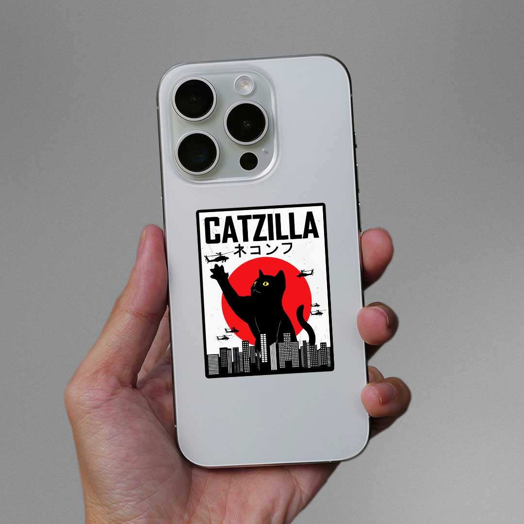 Catzilla Sticker vinyl sticker, waterproof durable collectible sticker for laptop, phone, bottle, bike, notebook, helmet, and accessories.