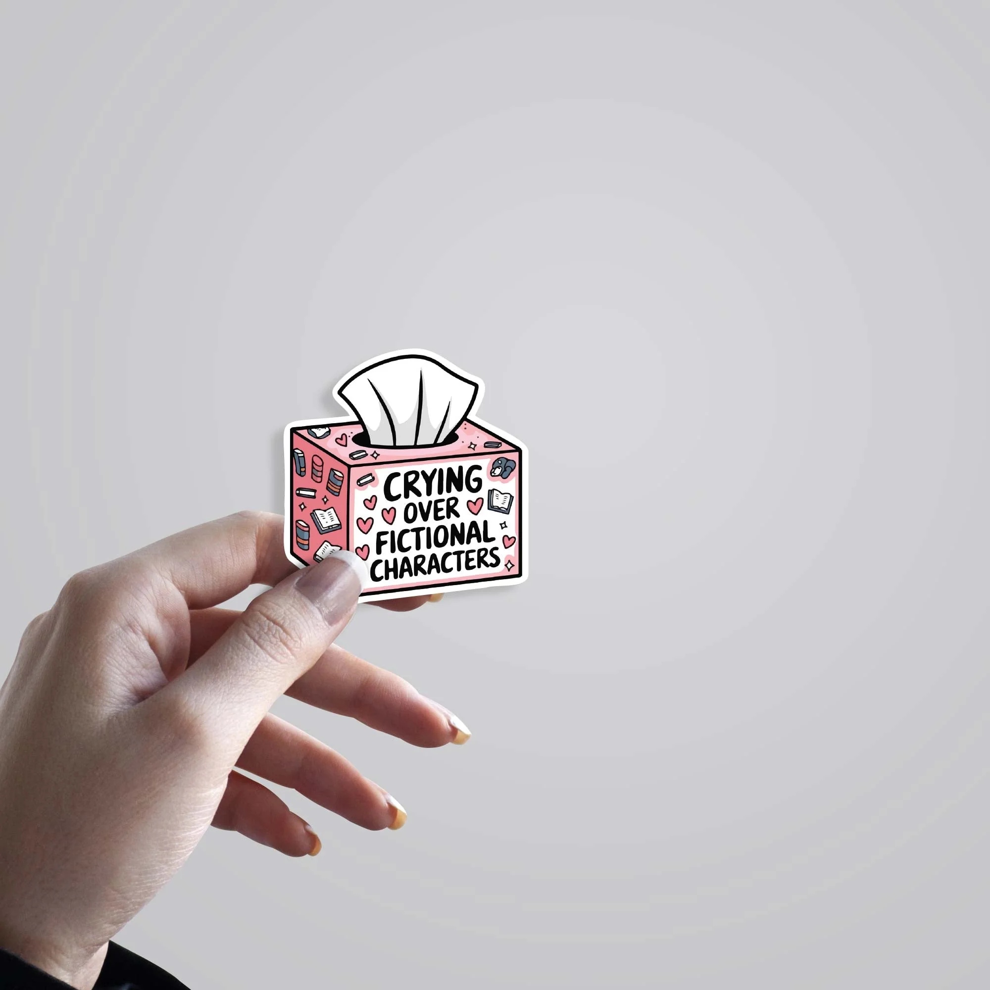 Crying Over Fictional Characters Witty Stickers vinyl sticker, waterproof durable collectible sticker for laptop, phone, bottle, bike, notebook, helmet, and accessories.