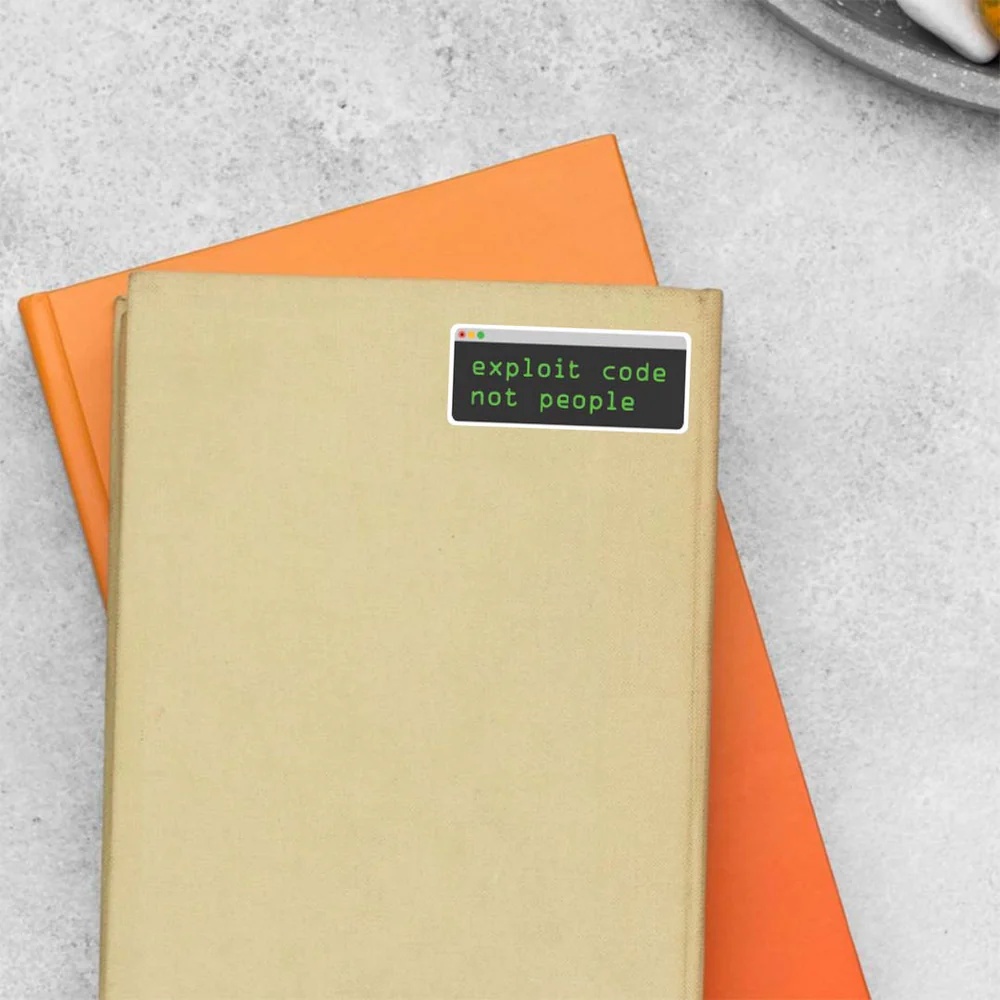 Exploit Code Not People Witty Stickers vinyl sticker, waterproof durable collectible sticker for laptop, phone, bottle, bike, notebook, helmet, and accessories.