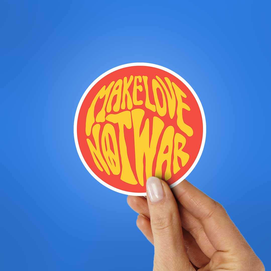 Make Love Not War Sticker vinyl sticker, waterproof durable collectible sticker for laptop, phone, bottle, bike, notebook, helmet, and accessories.
