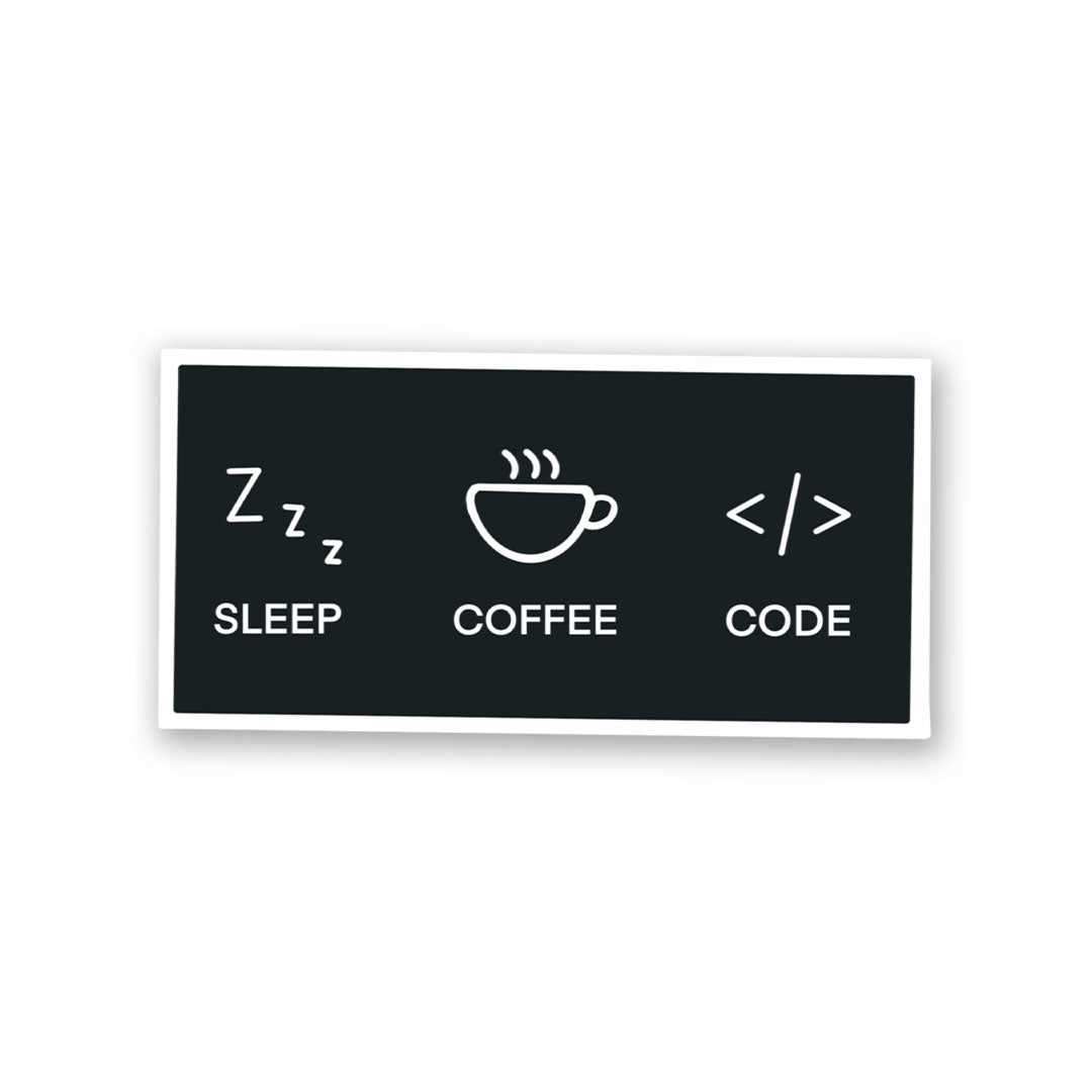 Sleep Coffee Code Sticker vinyl sticker, waterproof durable collectible sticker for laptop, phone, bottle, bike, notebook, helmet, and accessories.