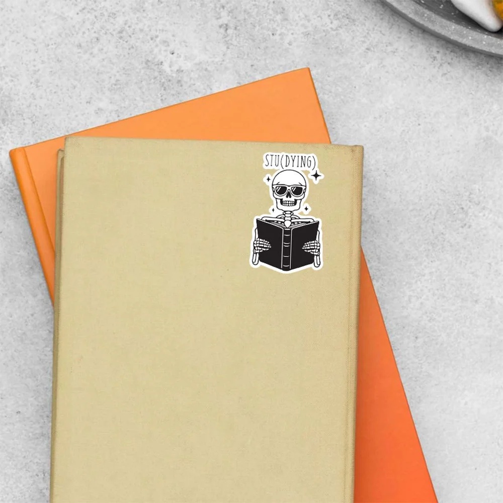 Studying Witty Stickers vinyl sticker, waterproof durable collectible sticker for laptop, phone, bottle, bike, notebook, helmet, and accessories.