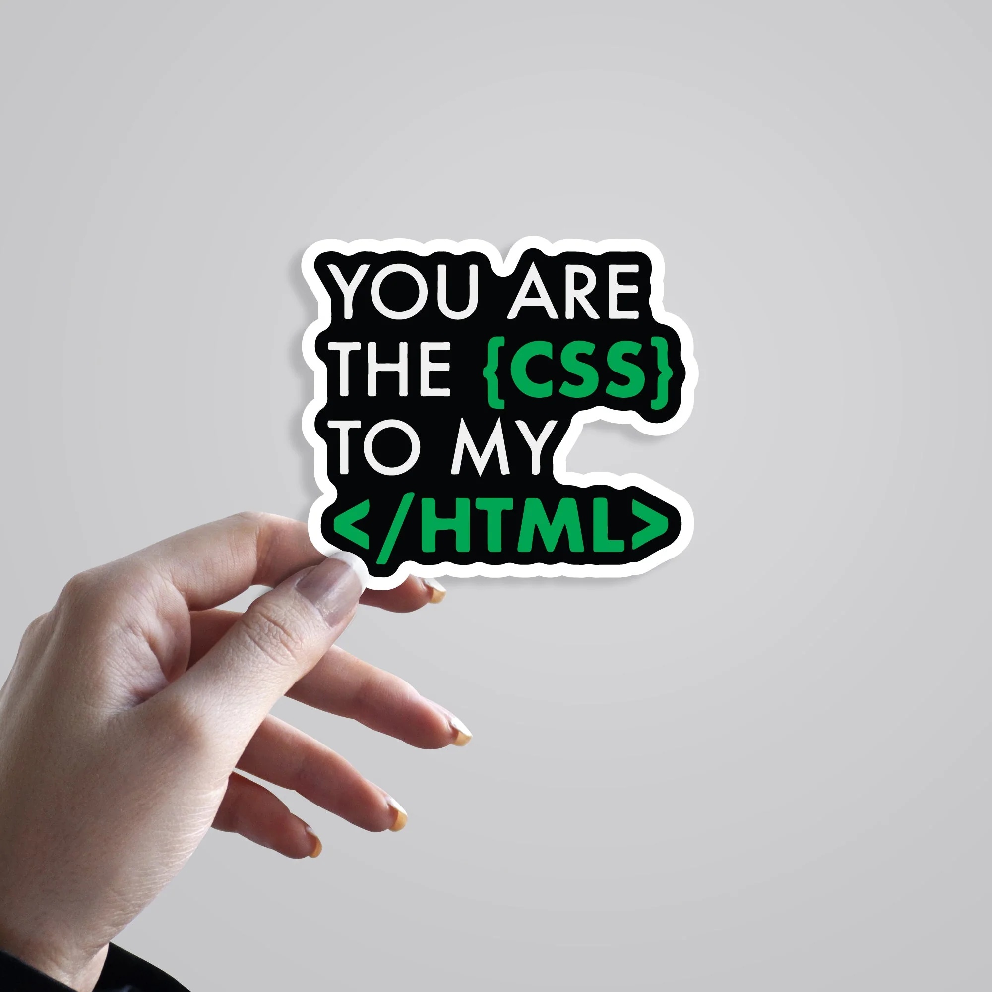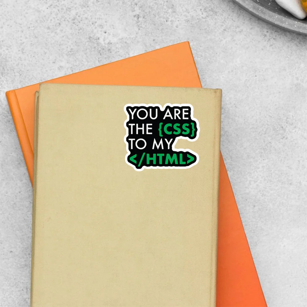 You Are The CSS To My HTML Witty Stickers vinyl sticker, waterproof durable collectible sticker for laptop, phone, bottle, bike, notebook, helmet, and accessories.