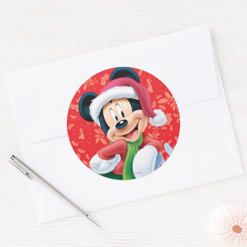Mickey Mouse On Snowflake Classic Round Sticker vinyl sticker, waterproof durable collectible sticker for laptop, phone, bottle, bike, notebook, helmet, and accessories.