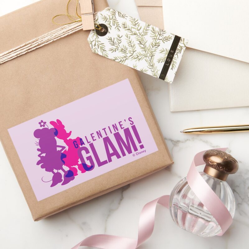 Minnie Mouse Daisy Duck Galentines Glam Rectangular Sticker vinyl sticker, waterproof durable collectible sticker for laptop, phone, bottle, bike, notebook, helmet, and accessories.