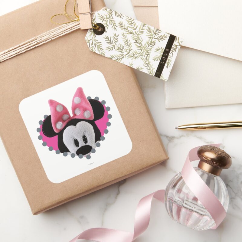 Pook A Looz Minnie Peeking Square Sticker vinyl sticker, waterproof durable collectible sticker for laptop, phone, bottle, bike, notebook, helmet, and accessories.