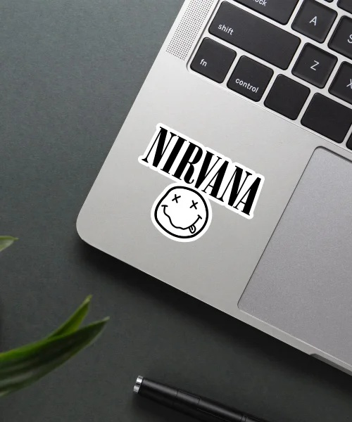Nirvana Sticker vinyl sticker, waterproof durable collectible sticker for laptop, phone, bottle, bike, notebook, helmet, and accessories.