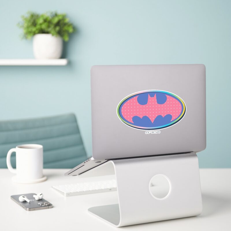 Batman Pink Polka Dot Logo Sticker vinyl sticker, waterproof durable collectible sticker for laptop, phone, bottle, bike, notebook, helmet, and accessories.