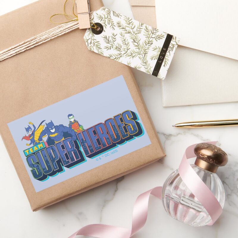 Batman Team Super Heroes Rectangular Sticker vinyl sticker, waterproof durable collectible sticker for laptop, phone, bottle, bike, notebook, helmet, and accessories.
