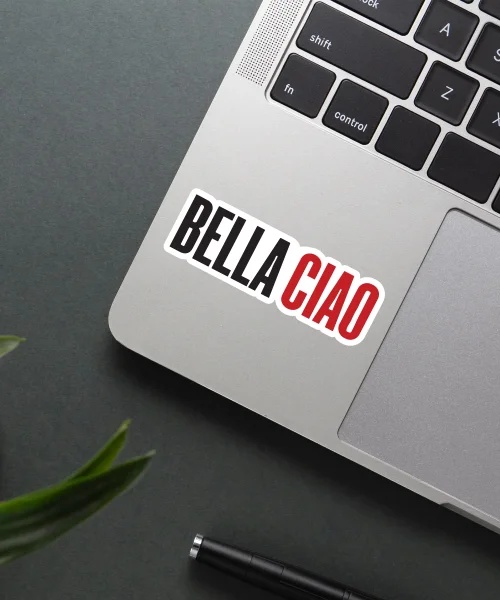 Bella Ciao Logo Sticker vinyl sticker, waterproof durable collectible sticker for laptop, phone, bottle, bike, notebook, helmet, and accessories.