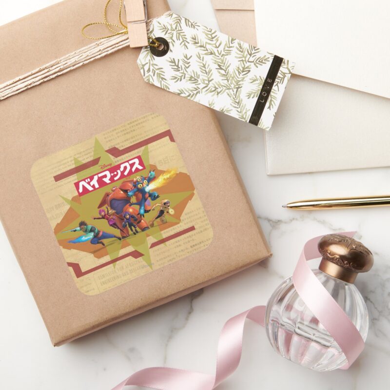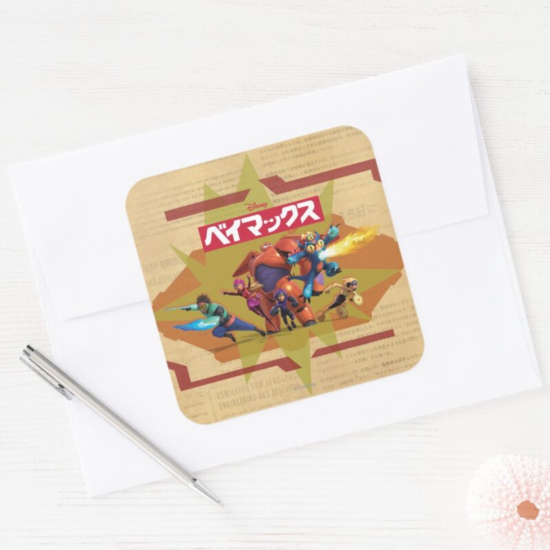 Big Hero 6 Superheros Square Sticker vinyl sticker, waterproof durable collectible sticker for laptop, phone, bottle, bike, notebook, helmet, and accessories.