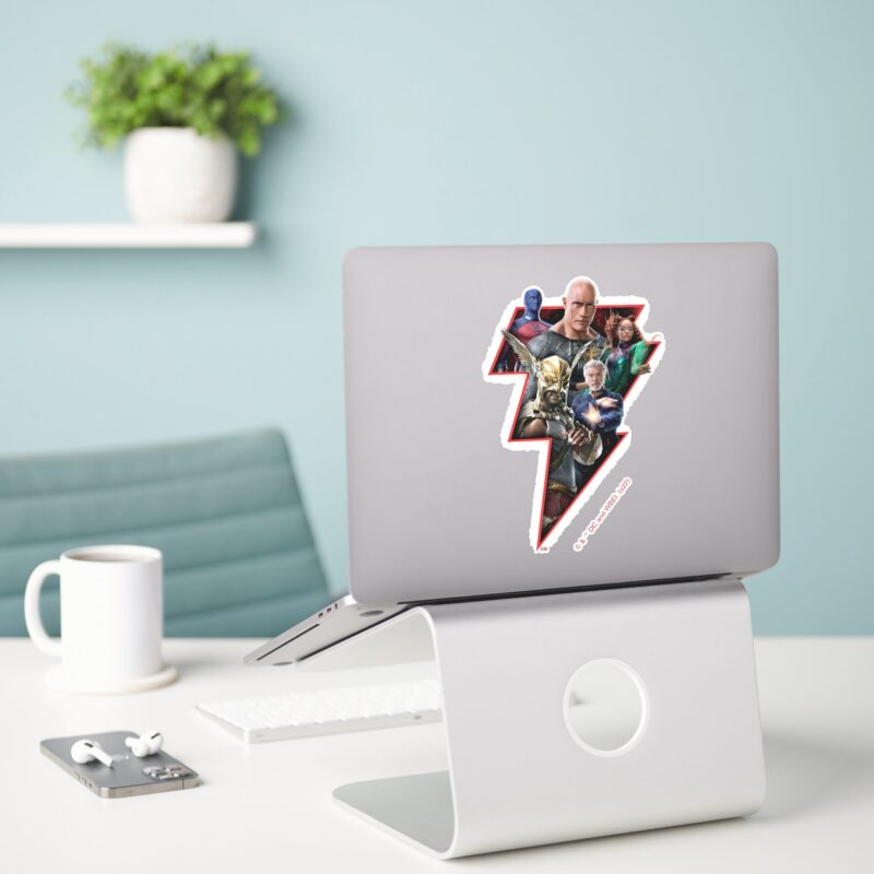 Black Adam Group Lightning Graphic Sticker vinyl sticker, waterproof durable collectible sticker for laptop, phone, bottle, bike, notebook, helmet, and accessories.