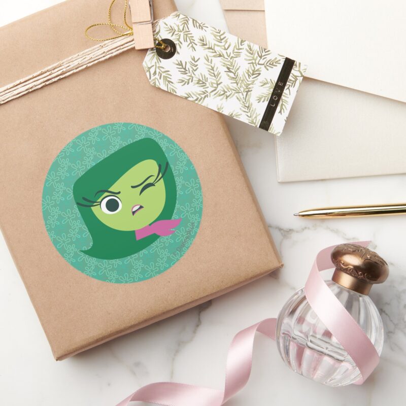 Disgust Classic Round Sticker vinyl sticker, waterproof durable collectible sticker for laptop, phone, bottle, bike, notebook, helmet, and accessories.