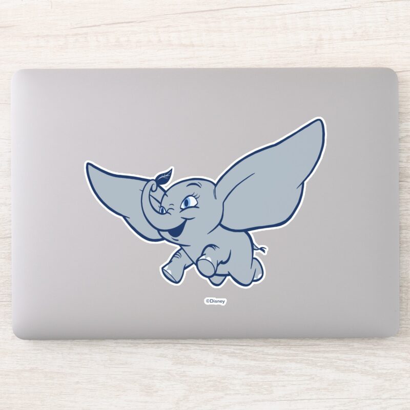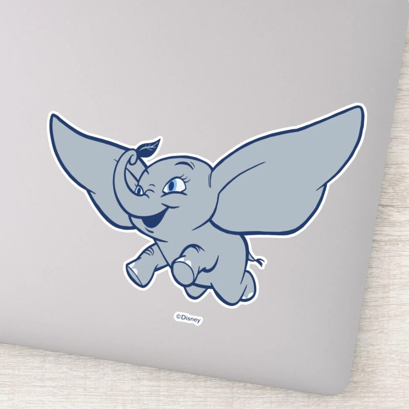 Dumbo Cartoon Dumbo Flying With Feather Sticker vinyl sticker, waterproof durable collectible sticker for laptop, phone, bottle, bike, notebook, helmet, and accessories.