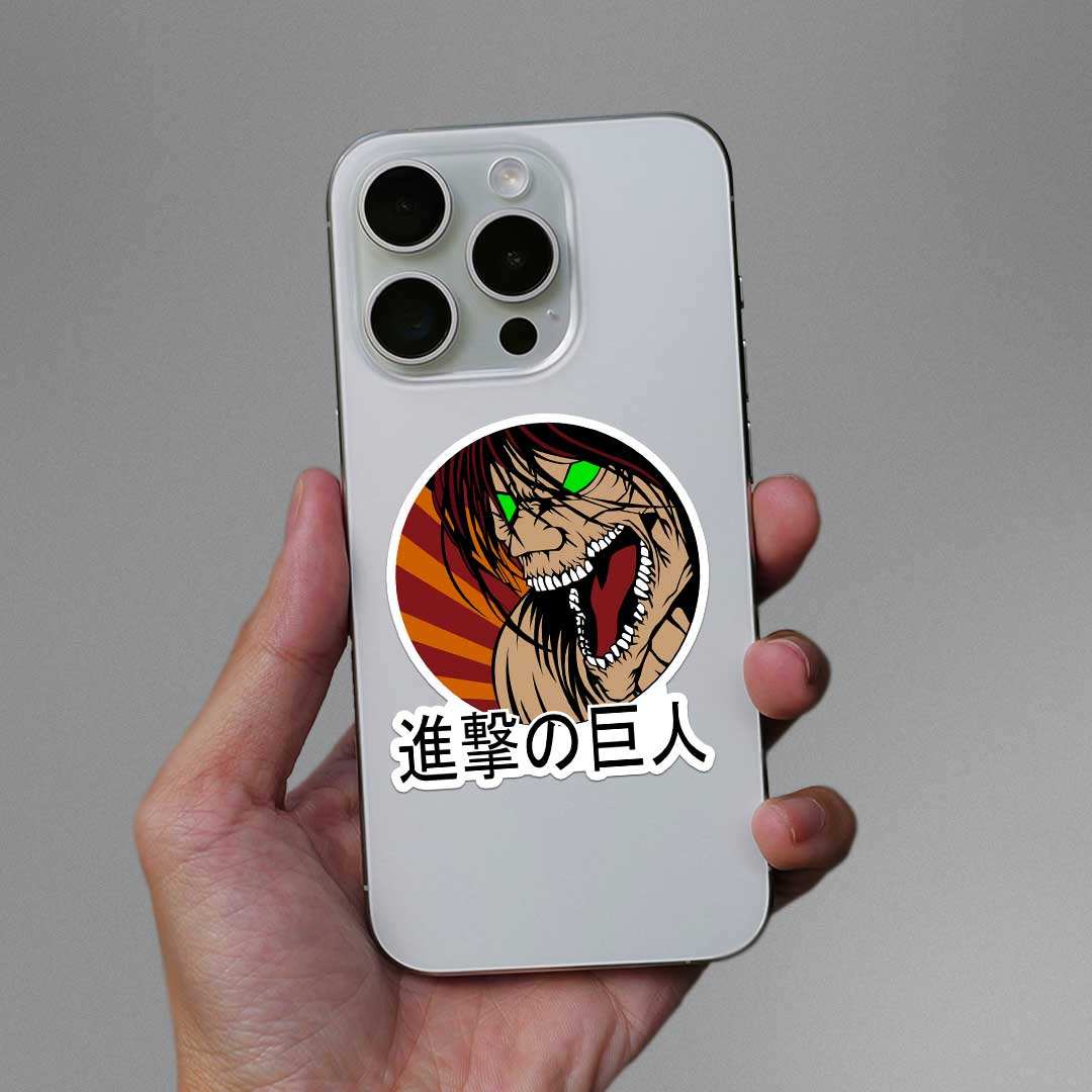 Eren Scary Face Sticker vinyl sticker, waterproof durable collectible sticker for laptop, phone, bottle, bike, notebook, helmet, and accessories.