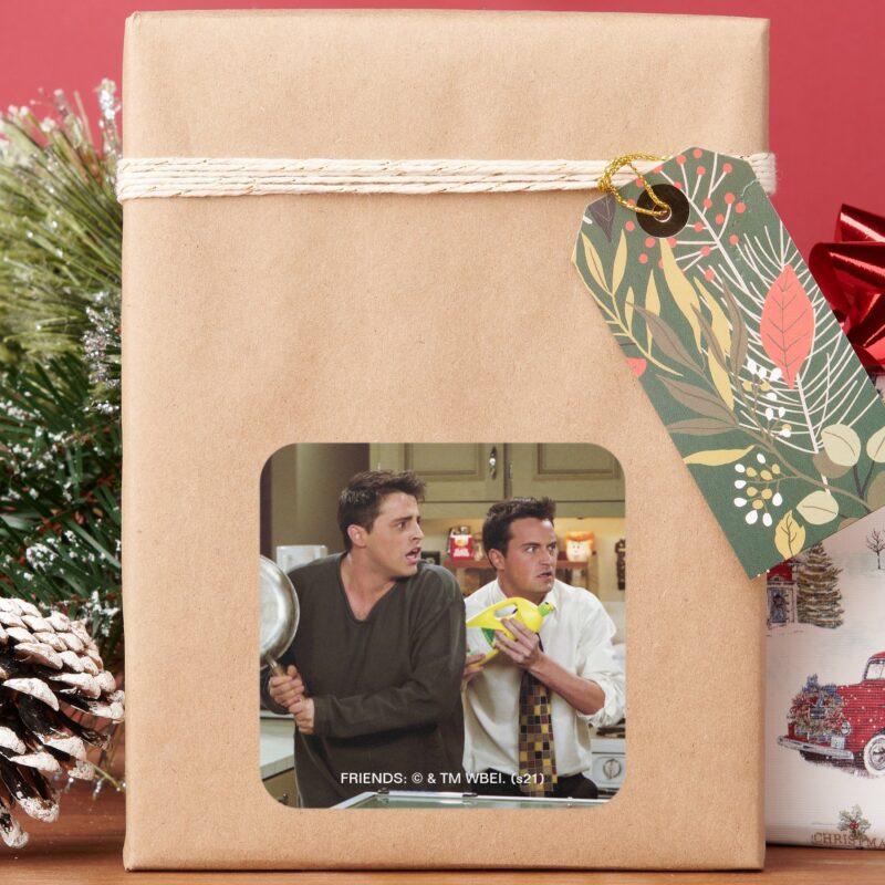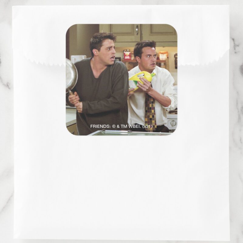 FRIENDS™ Joey Chandler Scared Square Sticker vinyl sticker, waterproof durable collectible sticker for laptop, phone, bottle, bike, notebook, helmet, and accessories.