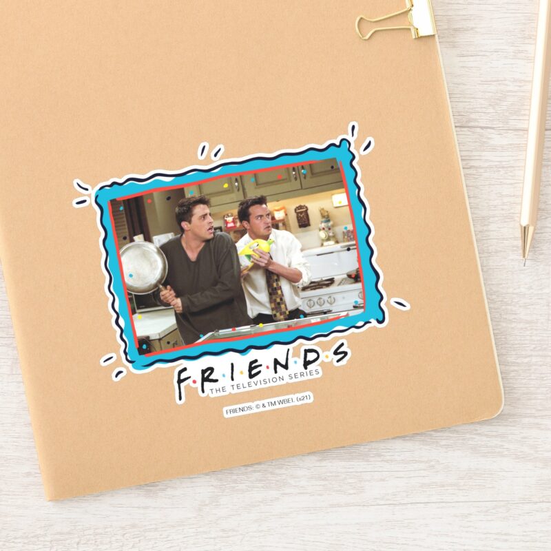 FRIENDS™ Joey Chandler Scared Sticker vinyl sticker, waterproof durable collectible sticker for laptop, phone, bottle, bike, notebook, helmet, and accessories.