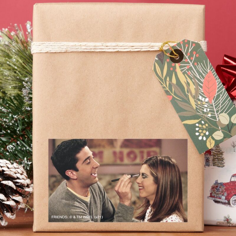 FRIENDS™ Ross Does Rachels Makeup Rectangular Sticker vinyl sticker, waterproof durable collectible sticker for laptop, phone, bottle, bike, notebook, helmet, and accessories.