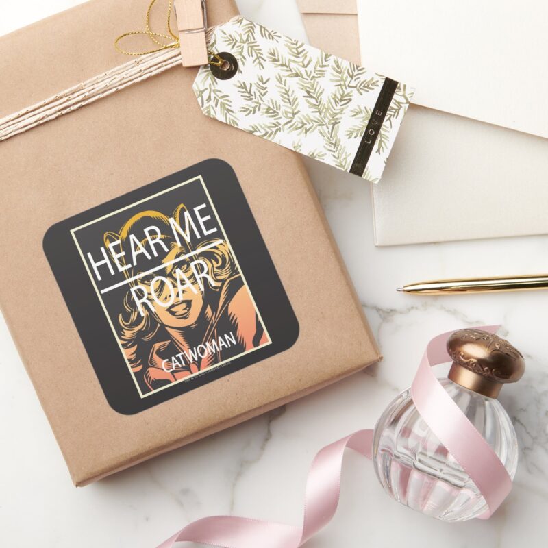 Hear Me Roar Square Sticker vinyl sticker, waterproof durable collectible sticker for laptop, phone, bottle, bike, notebook, helmet, and accessories.