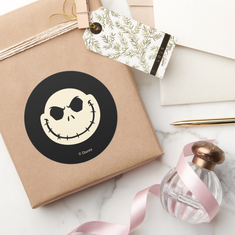 Jack Skellington Cross Bones Pattern Classic Round Sticker vinyl sticker, waterproof durable collectible sticker for laptop, phone, bottle, bike, notebook, helmet, and accessories.