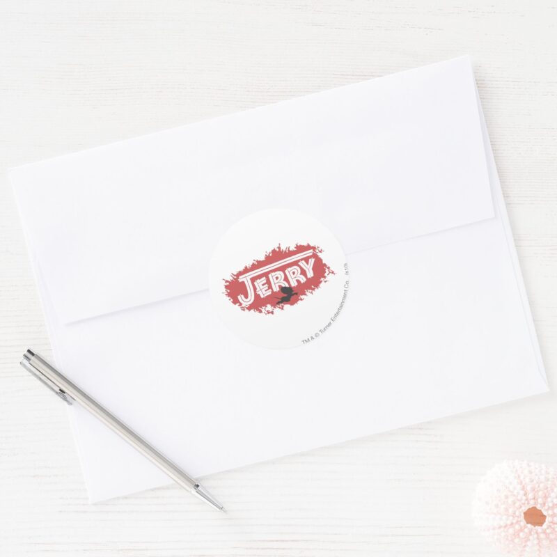 Jerry Silhouette Logo Classic Round Sticker vinyl sticker, waterproof durable collectible sticker for laptop, phone, bottle, bike, notebook, helmet, and accessories.