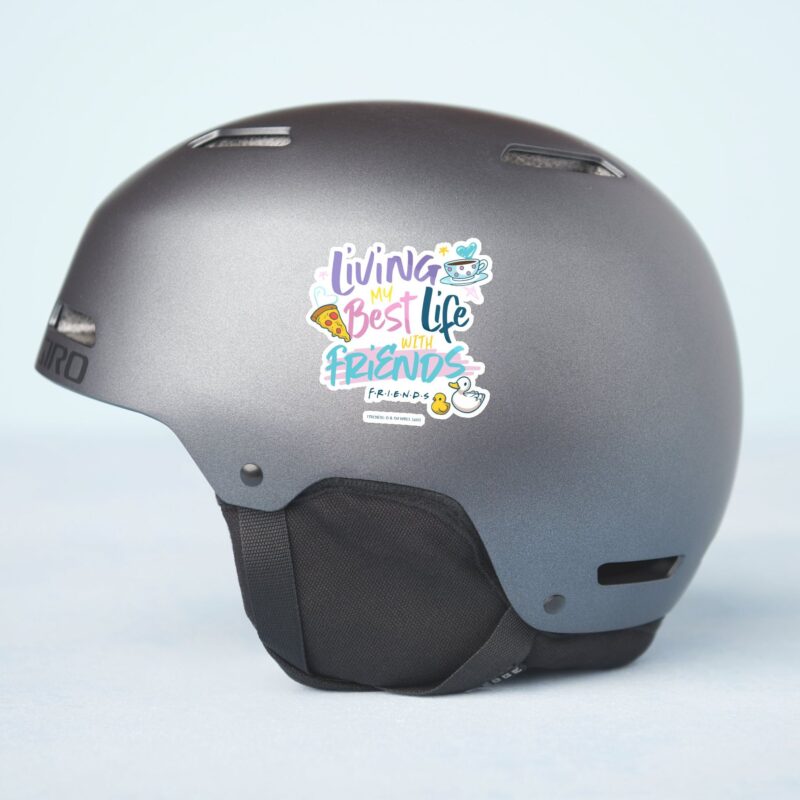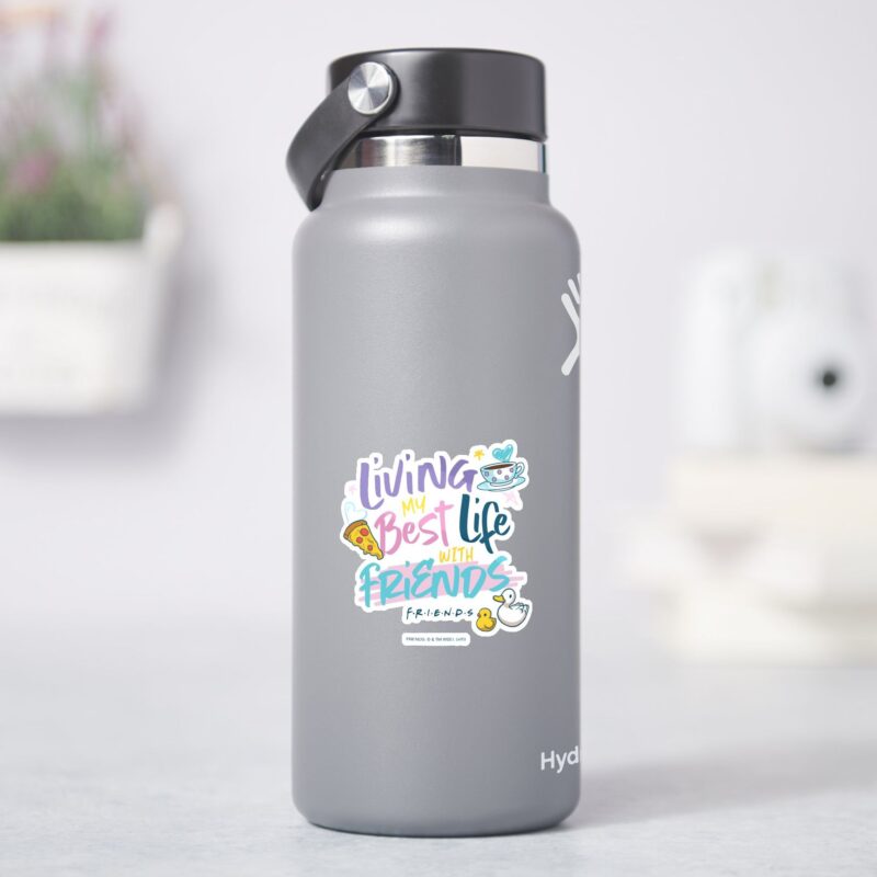 Living My Best Life With FRIENDS™ Sticker vinyl sticker, waterproof durable collectible sticker for laptop, phone, bottle, bike, notebook, helmet, and accessories.