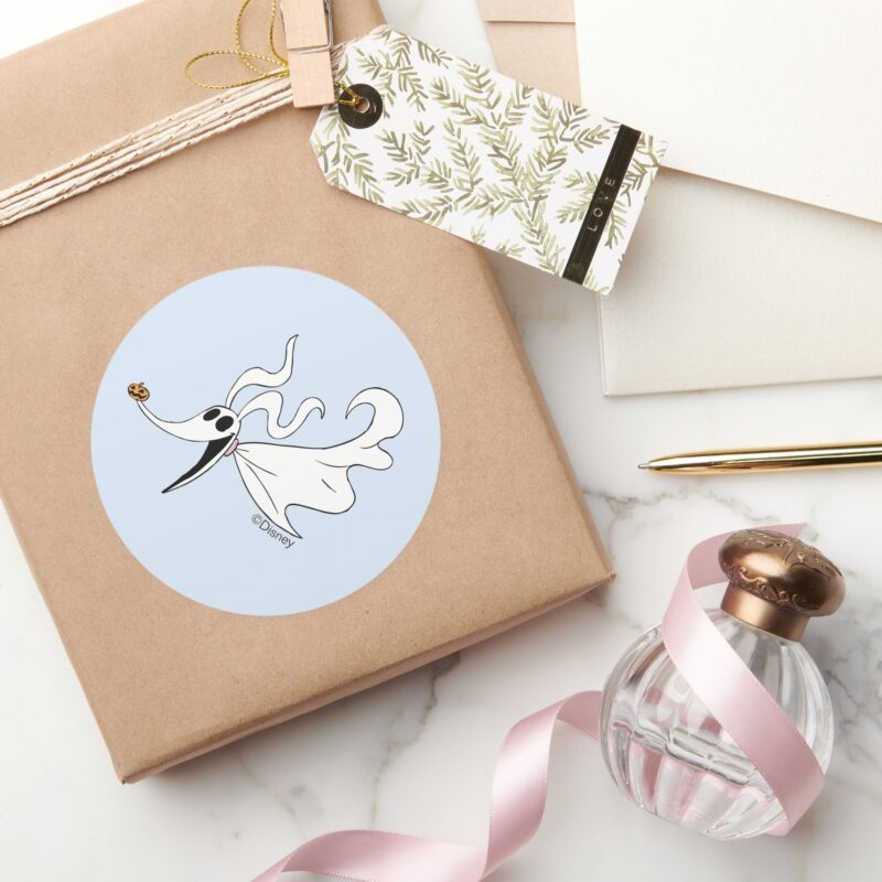 Nightmare Before Christmas Zero Classic Round Sticker vinyl sticker, waterproof durable collectible sticker for laptop, phone, bottle, bike, notebook, helmet, and accessories.