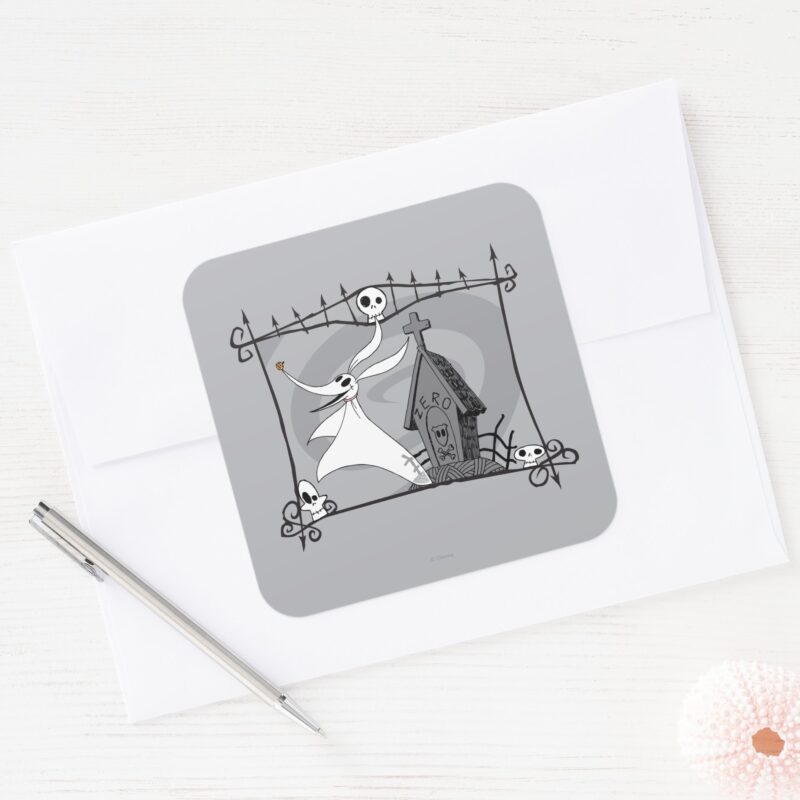 Nightmare Before Christmas Zero In Cemetery Square Sticker