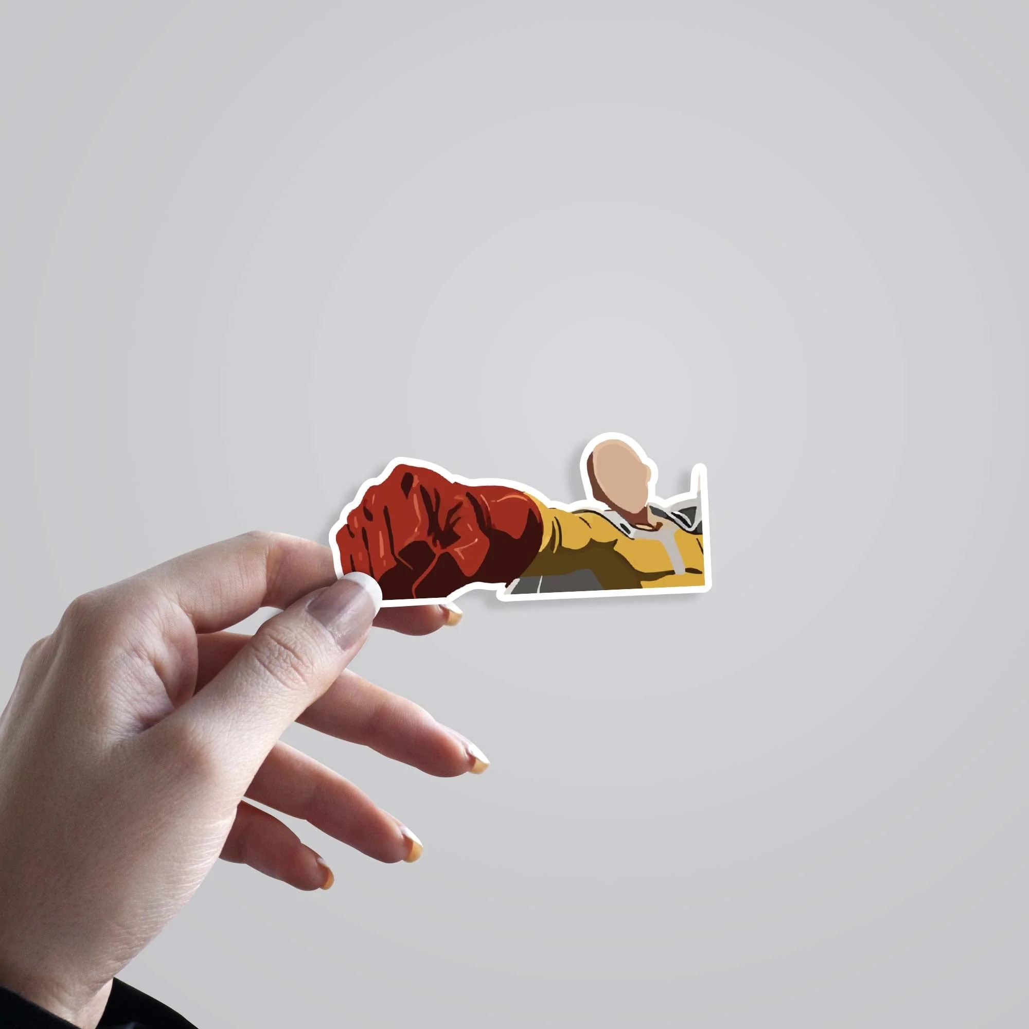 One Punch No Problem Anime Stickers vinyl sticker, waterproof durable collectible sticker for laptop, phone, bottle, bike, notebook, helmet, and accessories.