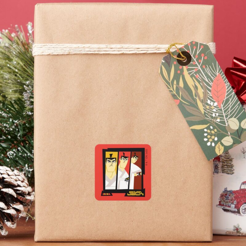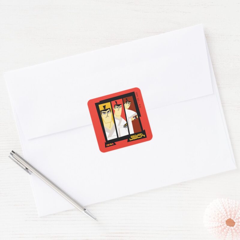 Samurai Jack Character Tri Panel Futuristic Frame Square Sticker