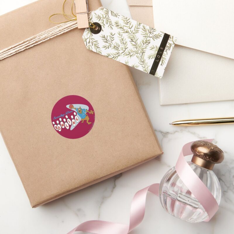 Scooby Doo Boliches Classic Round Sticker vinyl sticker, waterproof durable collectible sticker for laptop, phone, bottle, bike, notebook, helmet, and accessories.