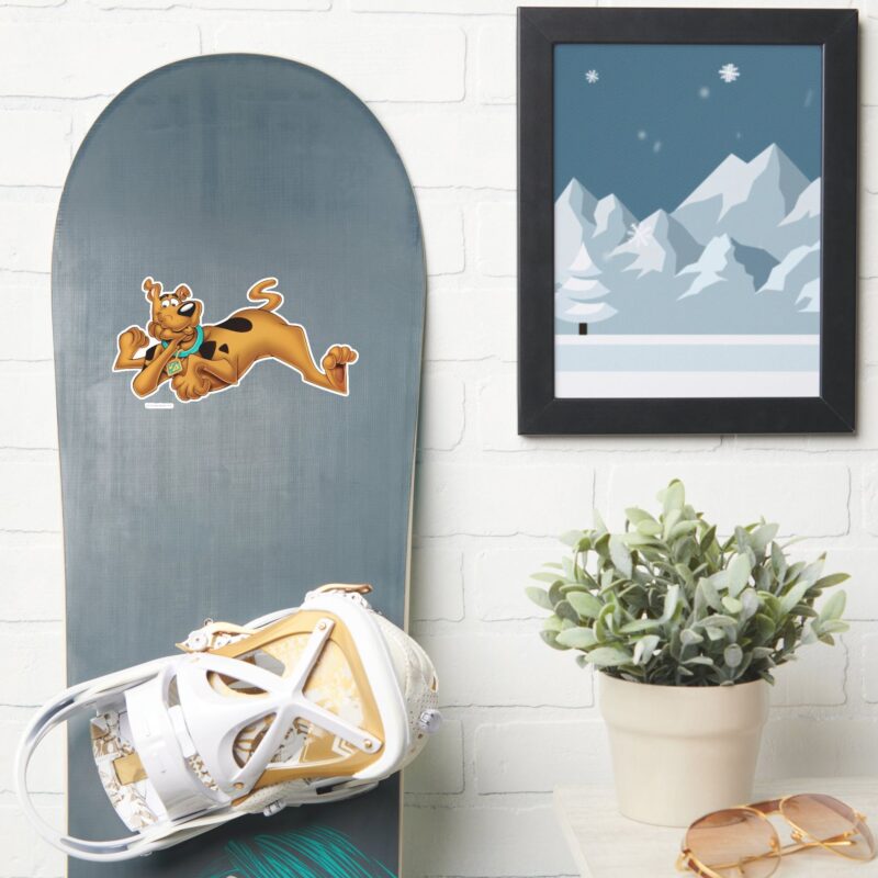 Scooby Doo Lying Down Sticker vinyl sticker, waterproof durable collectible sticker for laptop, phone, bottle, bike, notebook, helmet, and accessories.