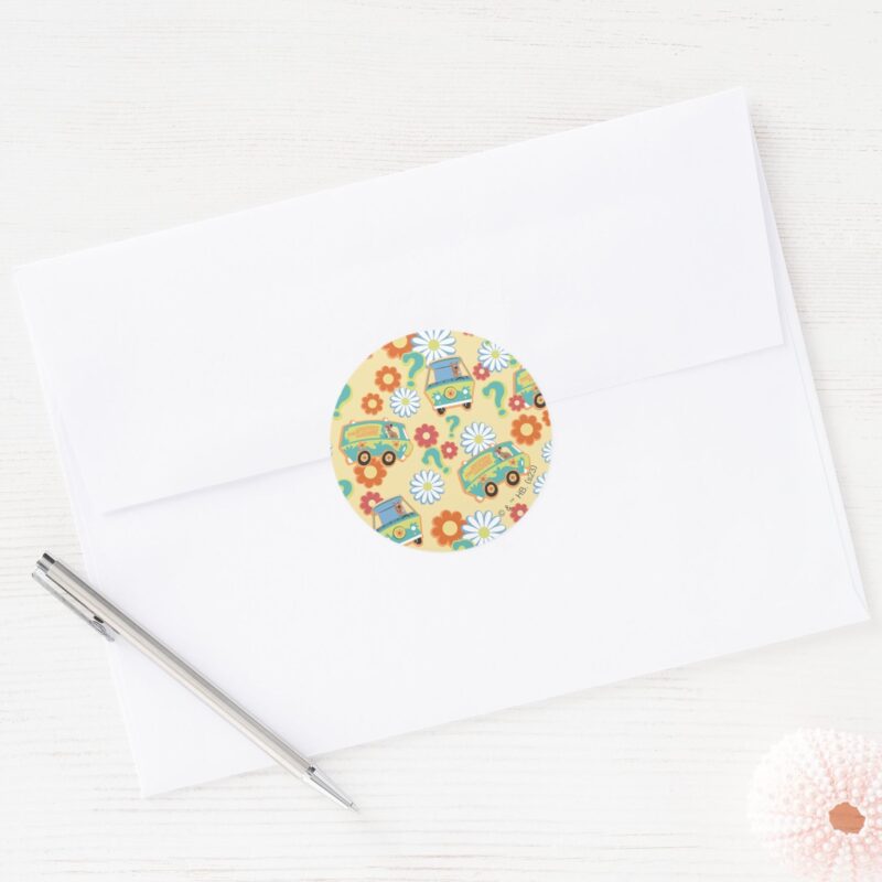 Scooby Doo Mystery Machine Flower Pattern Classic Round Sticker