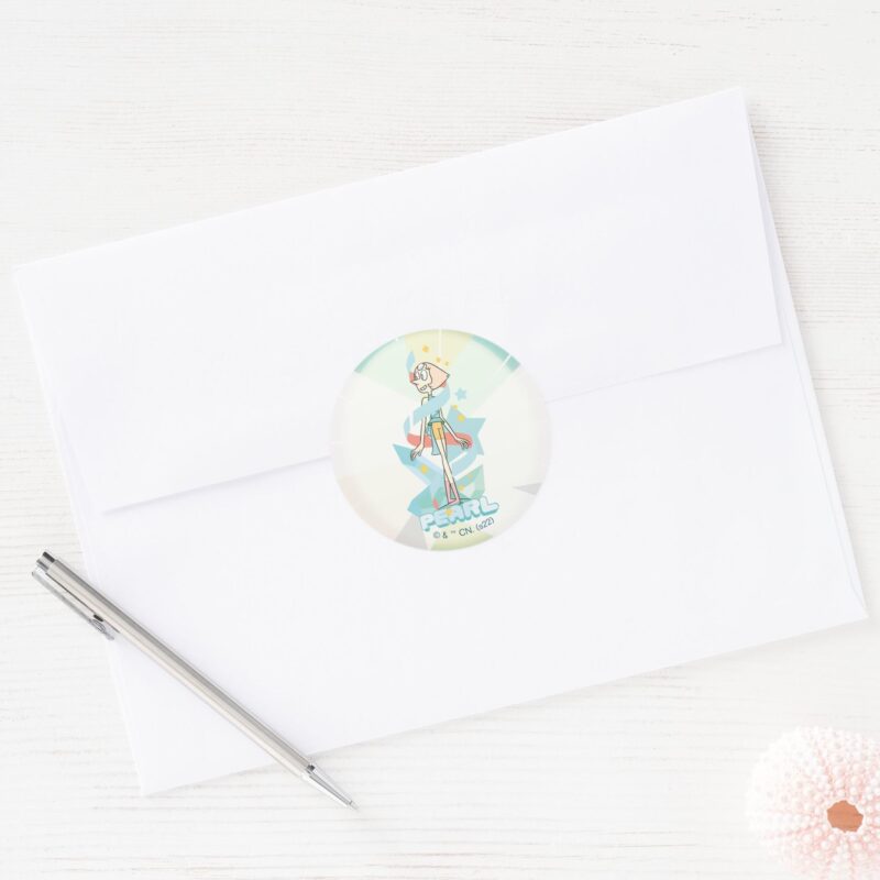 Steven Universe Pearl Character Graphic Classic Round Sticker vinyl sticker, waterproof durable collectible sticker for laptop, phone, bottle, bike, notebook, helmet, and accessories.