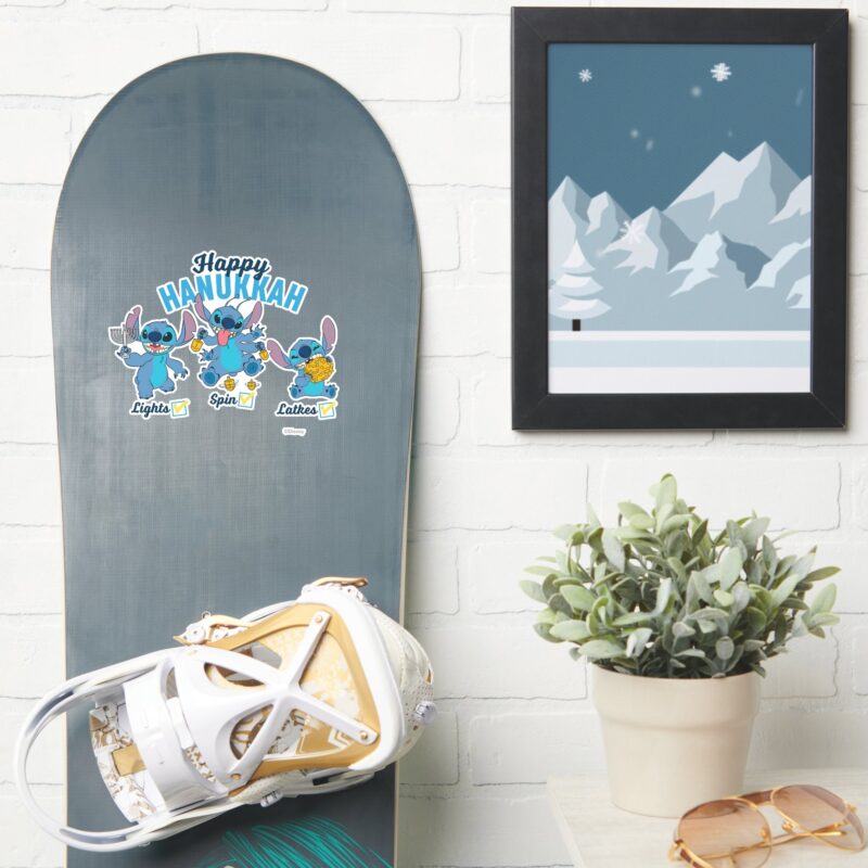Stitch Happy Hanukkah Sticker vinyl sticker, waterproof durable collectible sticker for laptop, phone, bottle, bike, notebook, helmet, and accessories.