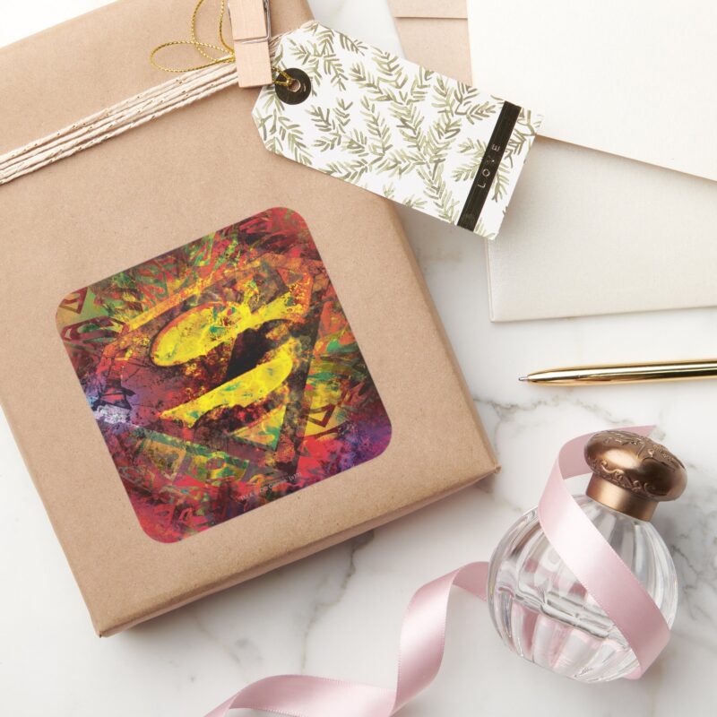 Superman S Shield Grunge Logo Square Sticker vinyl sticker, waterproof durable collectible sticker for laptop, phone, bottle, bike, notebook, helmet, and accessories.