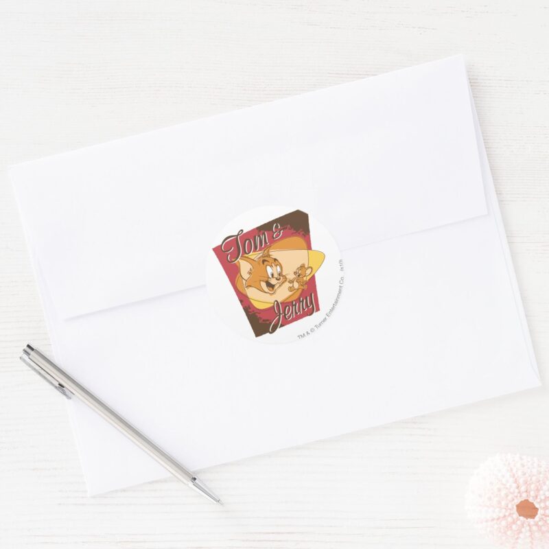 Tom And Jerry Logo 2 Classic Round Sticker vinyl sticker, waterproof durable collectible sticker for laptop, phone, bottle, bike, notebook, helmet, and accessories.