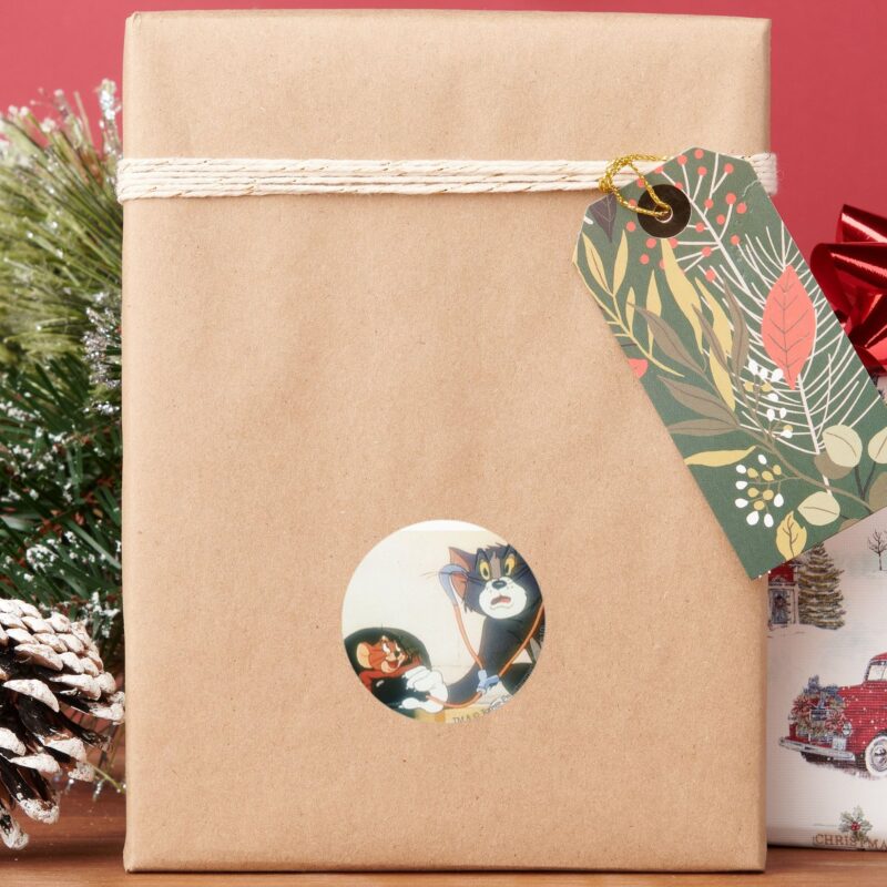 Tom And Jerry Stethescope Classic Round Sticker vinyl sticker, waterproof durable collectible sticker for laptop, phone, bottle, bike, notebook, helmet, and accessories.