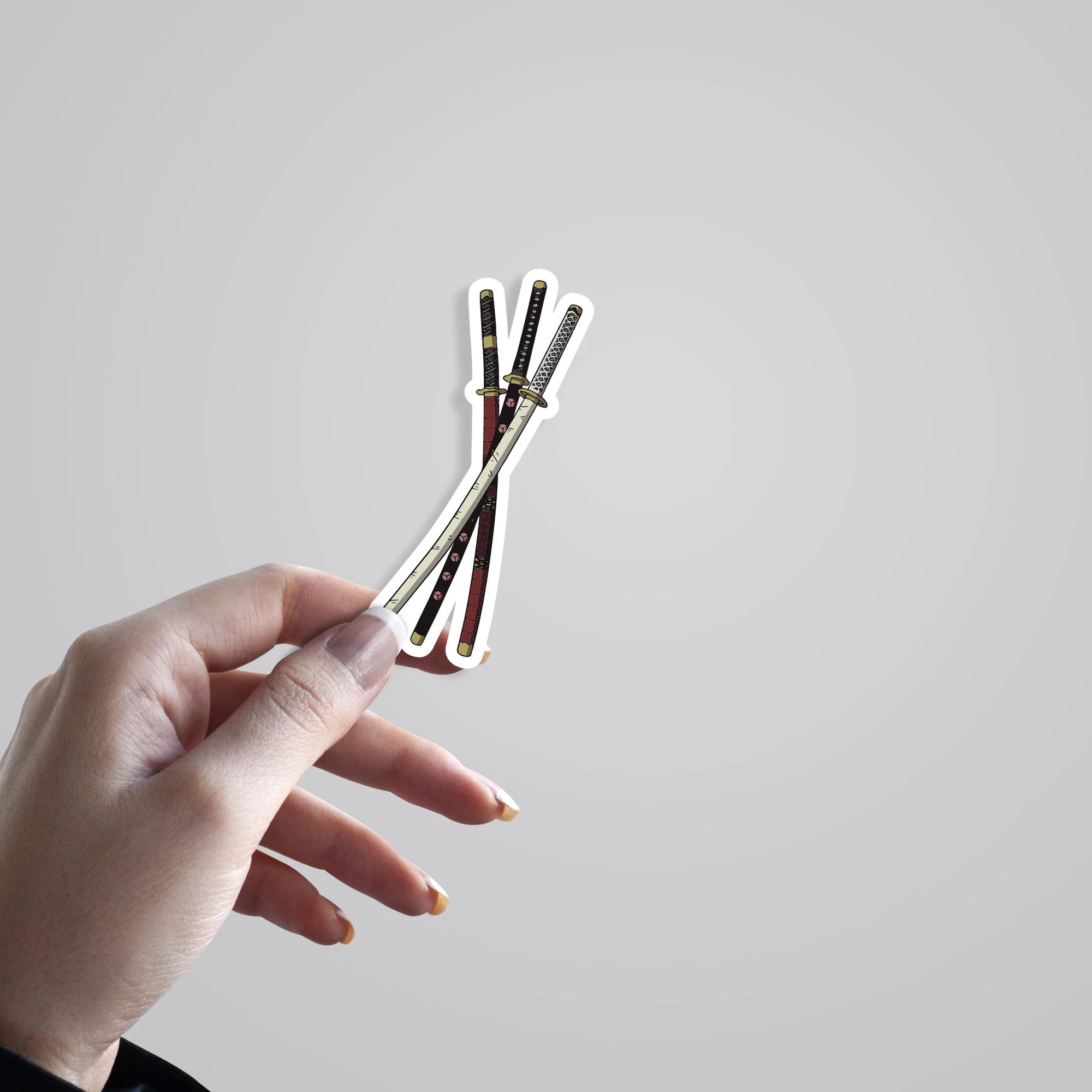 Zoros 3 Katanas Anime Stickers vinyl sticker, waterproof durable collectible sticker for laptop, phone, bottle, bike, notebook, helmet, and accessories.