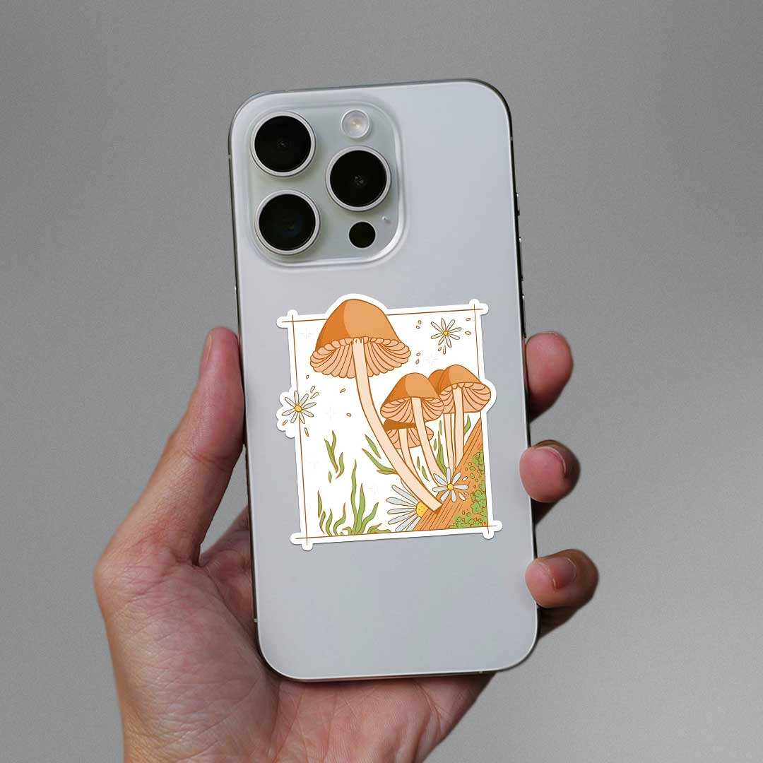 Mushroom Sticker vinyl sticker, waterproof durable collectible sticker for laptop, phone, bottle, bike, notebook, helmet, and accessories.